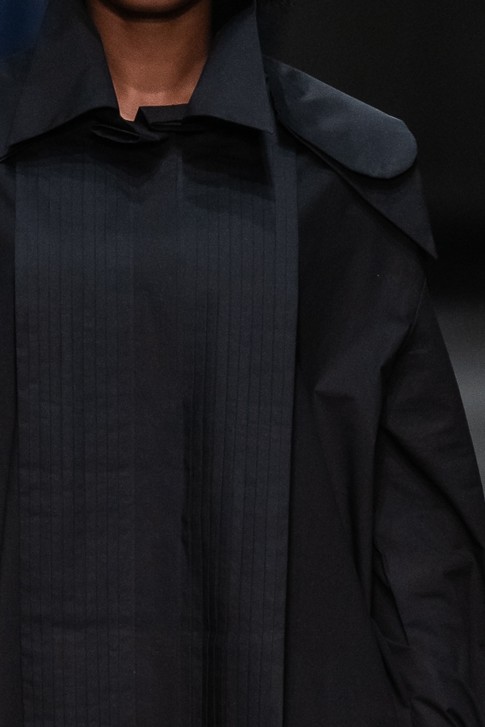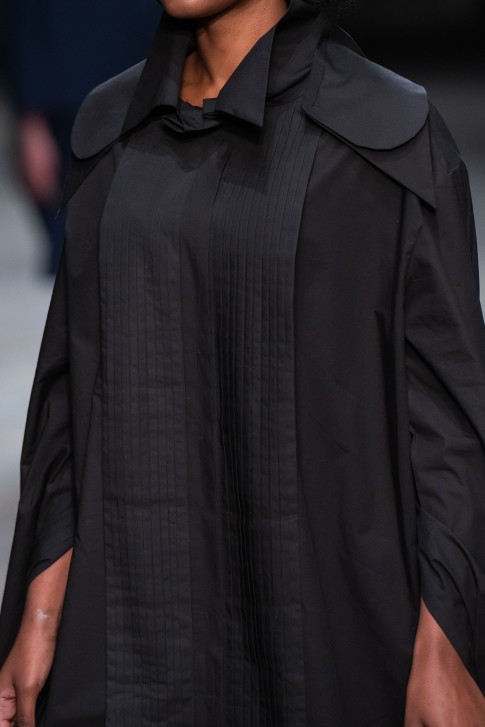 칼라, 앞여밈, 커프스, 소매 주름, 밑 단 등의 매혹적인 커팅이 특징인 셔츠 드레스