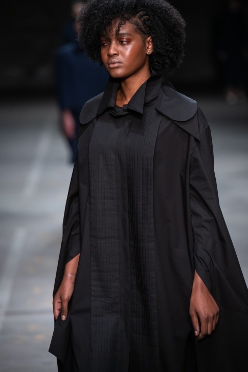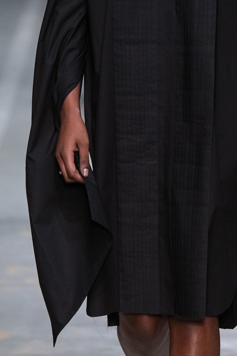 사각형의 면을 접기 방식만으로 디자인한 제품으로 커팅 라인이 없는 소매와 바디라인이 특징인 드레스