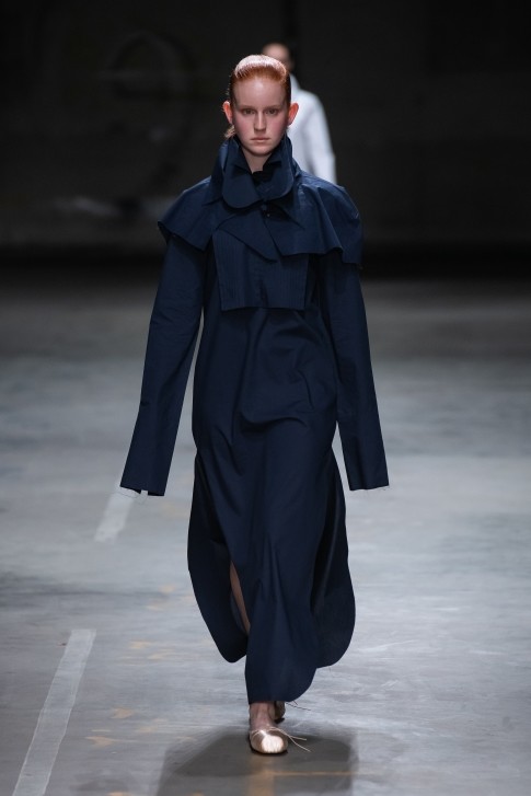 칼라, 앞여밈, 커프스, 소매 주름, 밑 단 등의 매혹적인 커팅이 특징인 셔츠 드레스