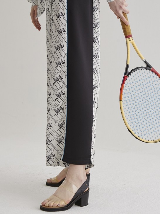 • 모노그램이 프린트된 정전기를 방지하는 사틴 소재의 와이드팬츠