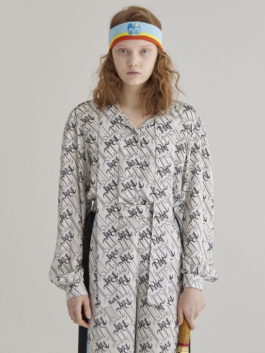 • 미미카위 모노그램 원단이 포인트인 세미오버사이즈 리본매듭 여밈 블라우스