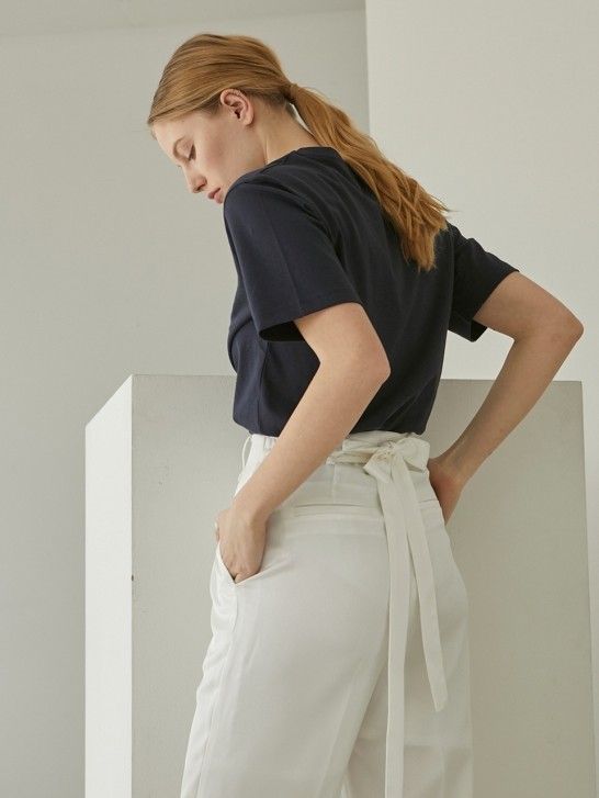 • 유아네이비 Double Strap Silky Wide Pants Ivory URNAVY