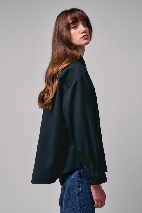 • 최고급 울100% 소재이며 은은한 광택감이 있고, 루즈한 사이즈감으로 뒷 기장이 긴 둥근 형태의 헴라인 블라우스