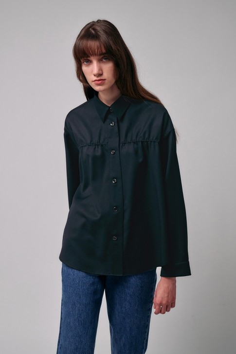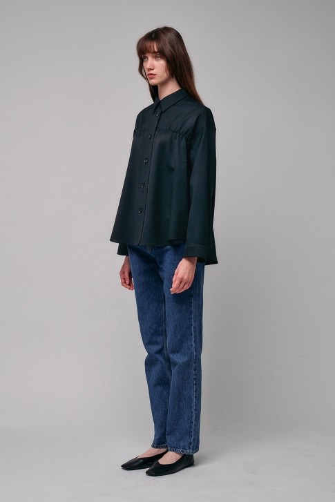 • 히로인 Shirring Wool Shirts (NAVY) HEROINE