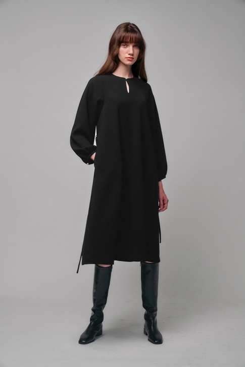 • 히로인 Pearl-Button Keyhole Midi Dress (BLACK) HEROINE
