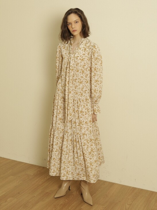 • 2단 티어드 스커트셔링이 페미닌한 내추럴 로맨시크 감성의 원피스
