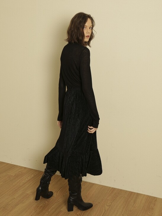 • 벨벳원단에 독특한 트위스트 크링클 주름이 잡힌 유니크 소재의 스커트