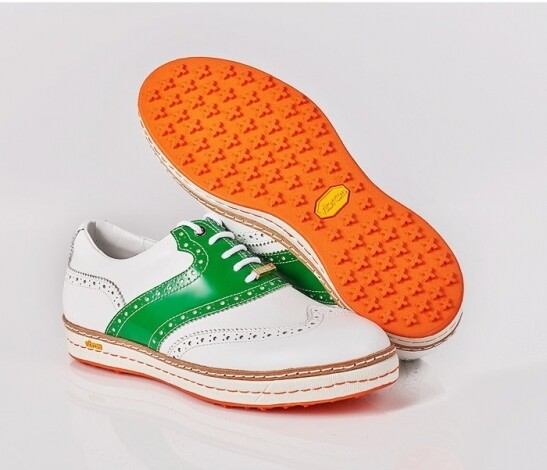 • 이태리 비브람사의 상쾌한 컬러 오렌지sole이 돋보이는 스파이크리스 스타일의 골프슈즈.