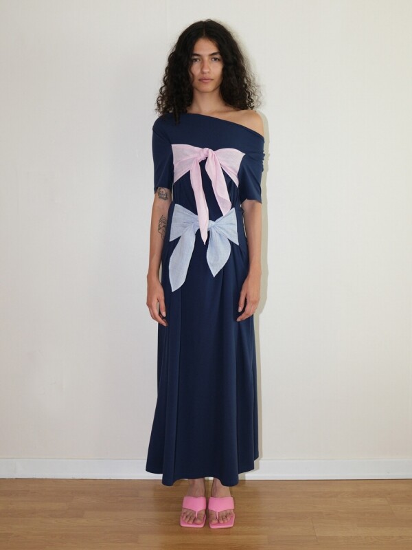 • 이콤마이 DOUBLE RIBBON LONG DRESS NAVY EcommaE