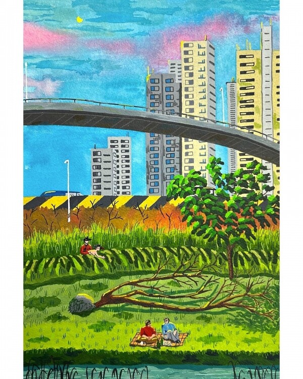 • 정지은 형 무슨 소리 안 들려? 2022 watercolor, acrylic on paper 36.5 × 29cm