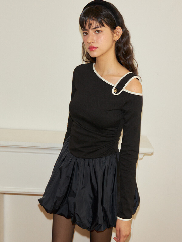 • 살롱드욘 Off Shoulder Ballet Core Mini Dress_ Black SALON DE YOHN