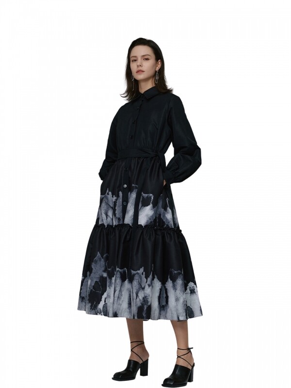 • 두칸 DSN-3502 OS BK 아웃 셔링 셔츠형 원피스 블랙 DOUCAN