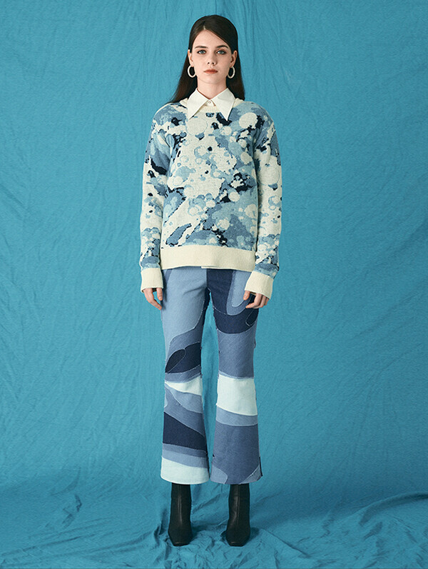 • 호수의 공기 방울이 얼은 모습을 담은 자카드 니트