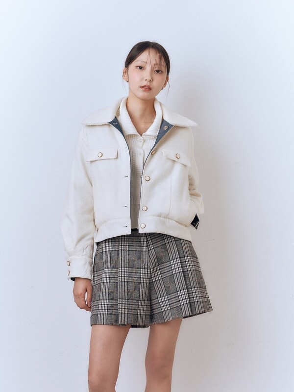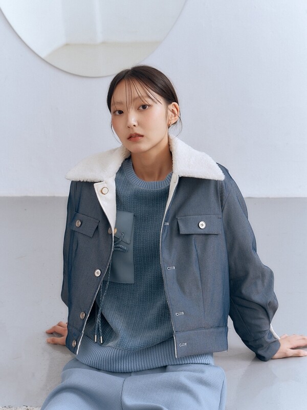 • 23 Winter Holiday 컬렉션 라인으로 트위드 소재와 데님소재의 리버시블 점퍼 입니다. 소재에 따른 단추와 카라 소재를 달리하여 tibaeg의 감성을 더하였으며, 빛에 따라 은은하게 반짝거리는 트위드 소재를 사용하여 고급스러움을 증가하였습니다.