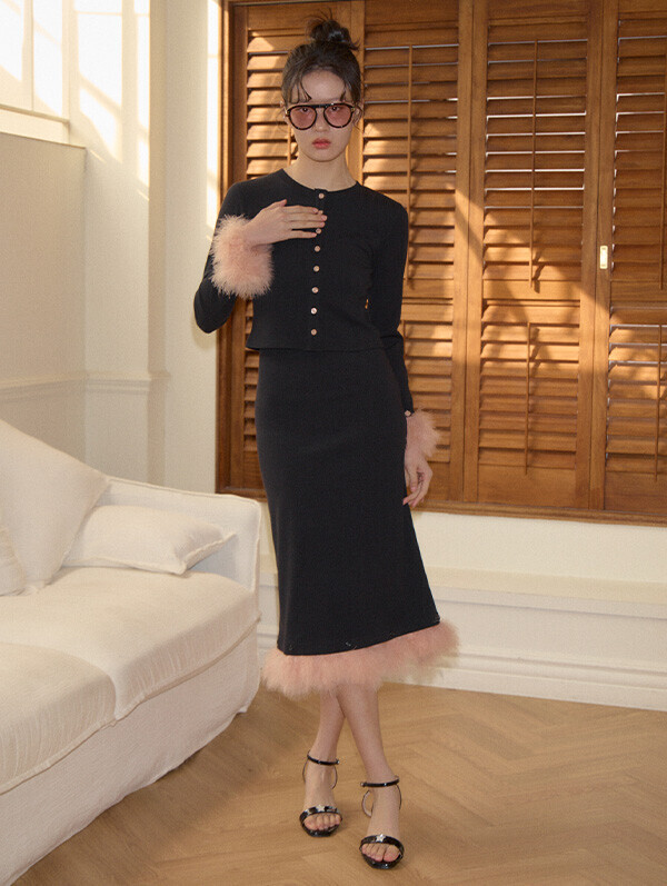 • 살롱드욘 Fur Trimming Skirt_ Black SALON DE YOHN
