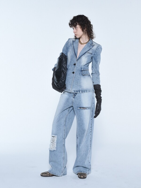 더발론만의 자체 워싱 공정을 거쳐 은은한 광택이 도는 와이드 핏의 데님 팬츠입니다. 코팅이 유니크하게 덮여있는 스타일이면서도 부담스럽지 않게 착용하기에 좋아 추천드립니다. *밝은 컬러의 슈즈와 함께 착용 시 이염이 발생할 수 있으니 주의 부탁드립니다.