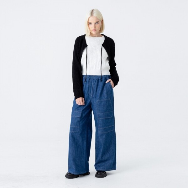 • 분더가이스트 허리밴딩 중청데님 카고와이드팬츠 WUNDERGEIST