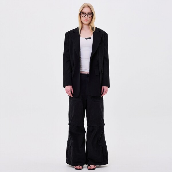 • [분더가이스트] 오버핏 언발란스 포켓 스트라이프 배색 블레이저 블랙