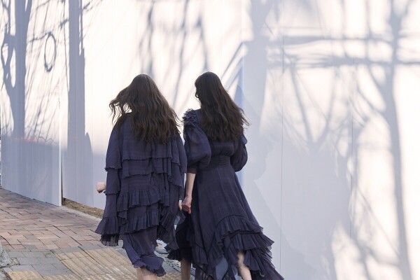 • 까이에 컷아웃 케이프 슬리브 언밸런스 티어드 롱 원피스 CAHIERS