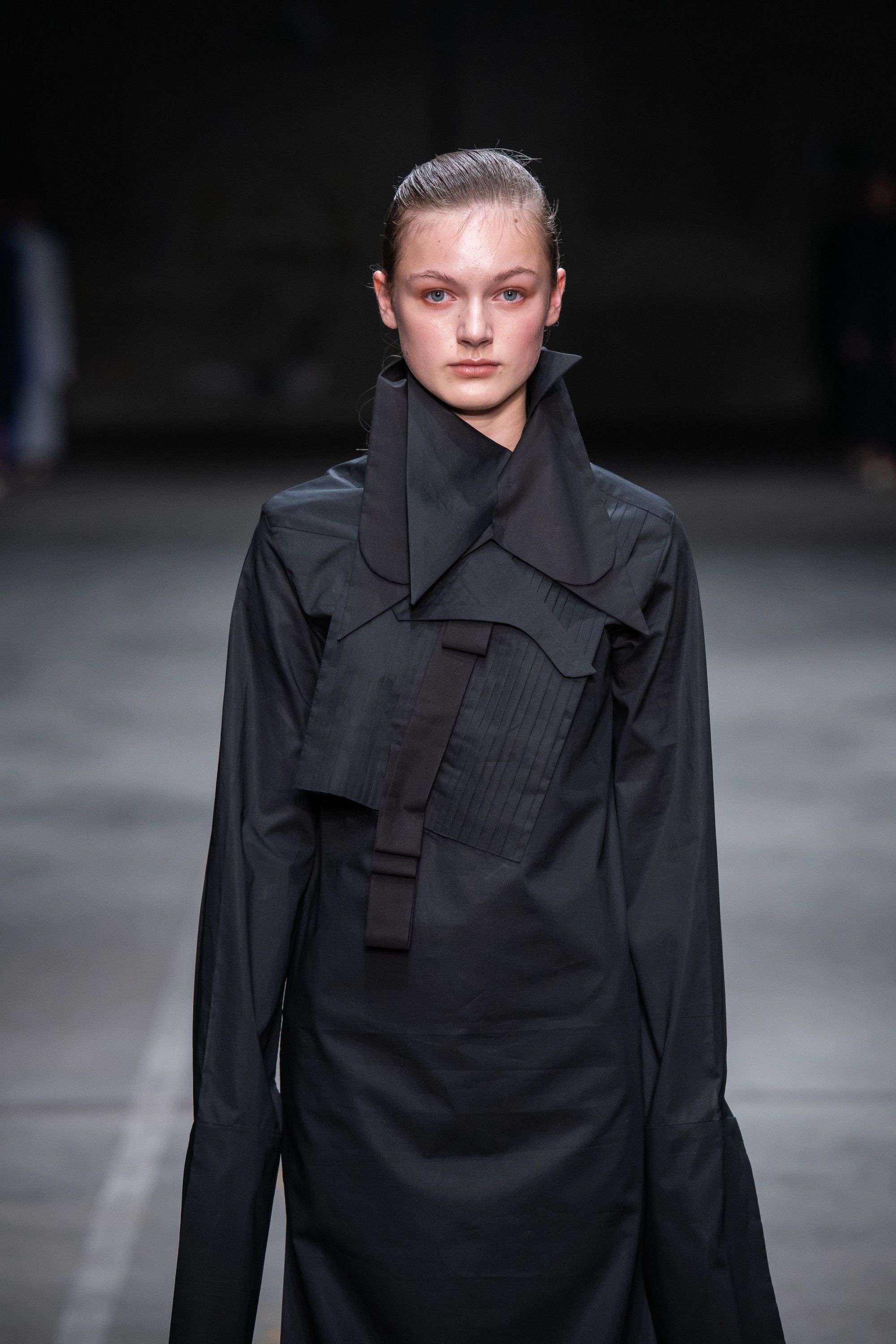 The shirtdress collection of HAESUNG BONG is a style of women’s dress that variates details from men’s dress shirts.