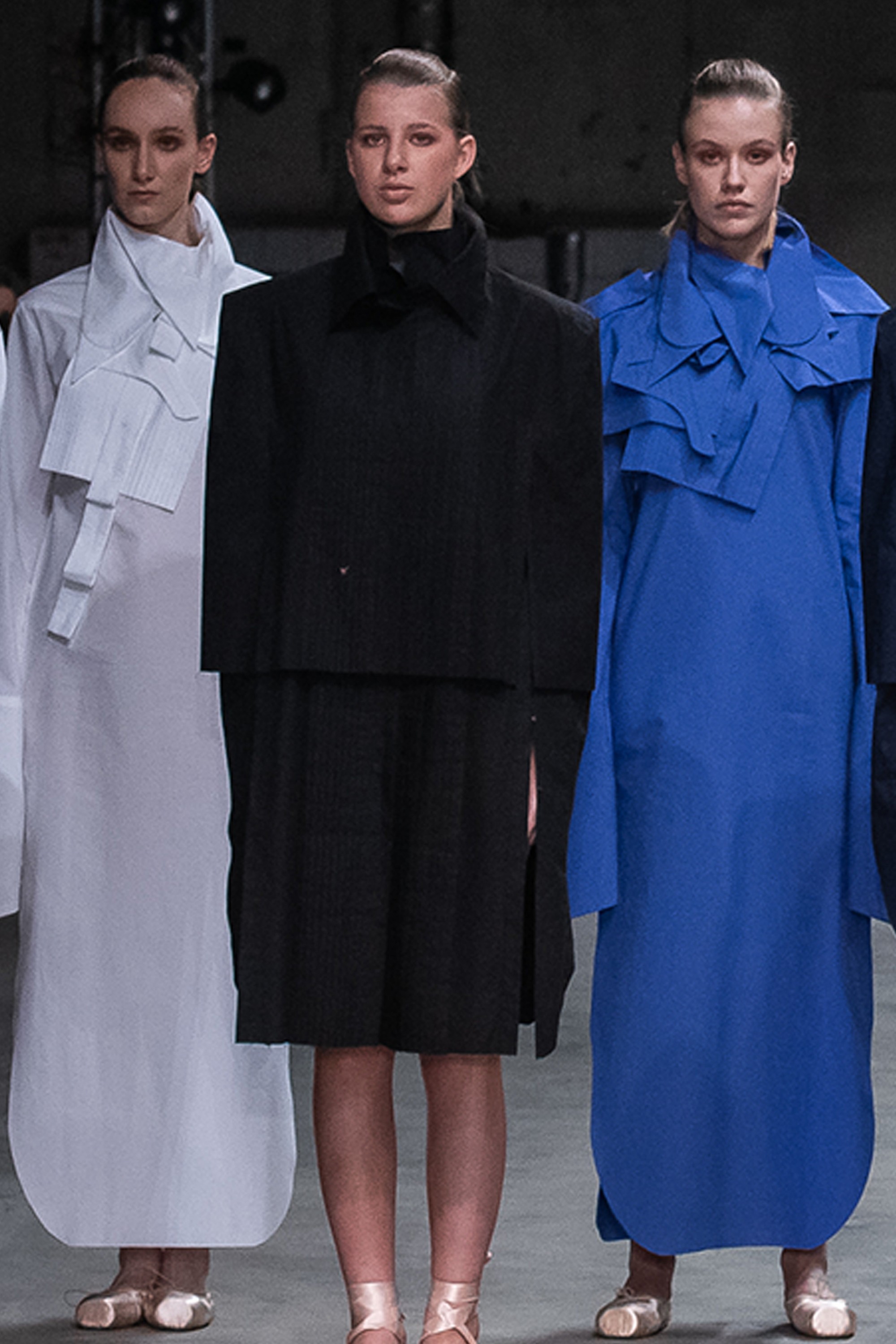 The shirtdress collection of HAESUNG BONG is a style of women’s dress that variates details from men’s dress shirts.