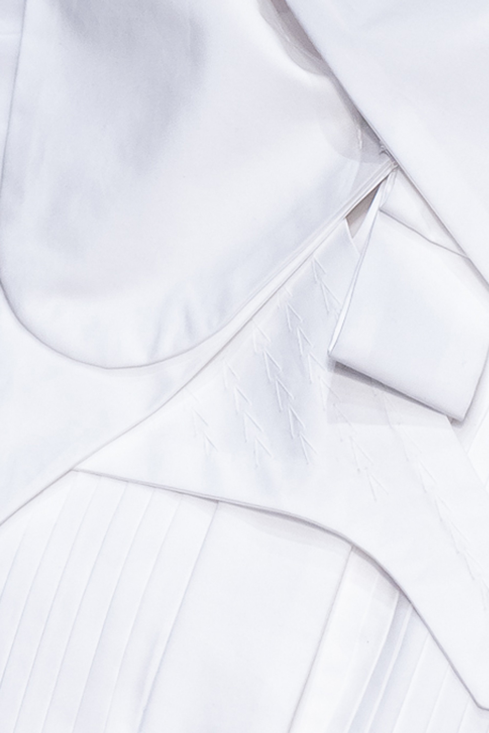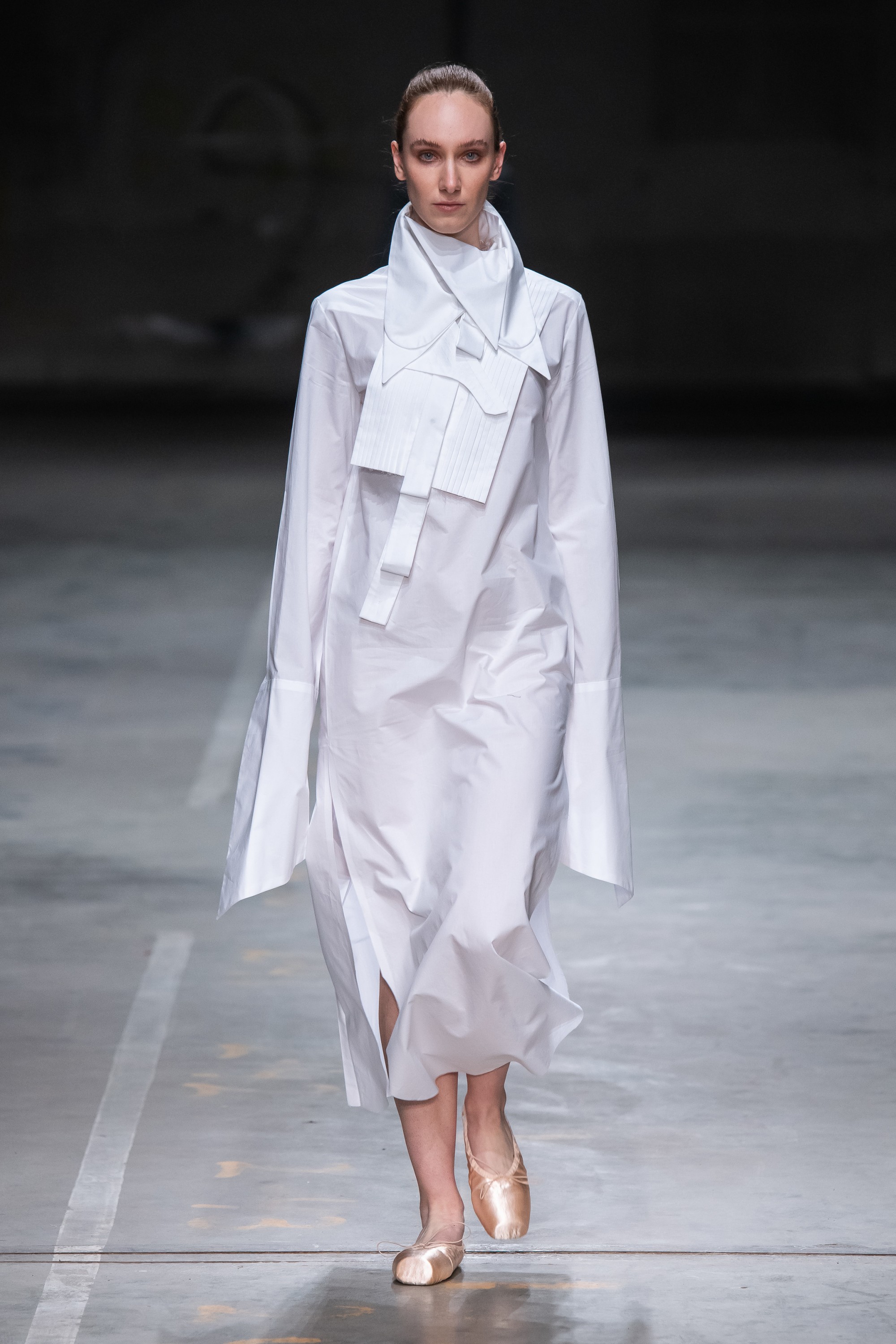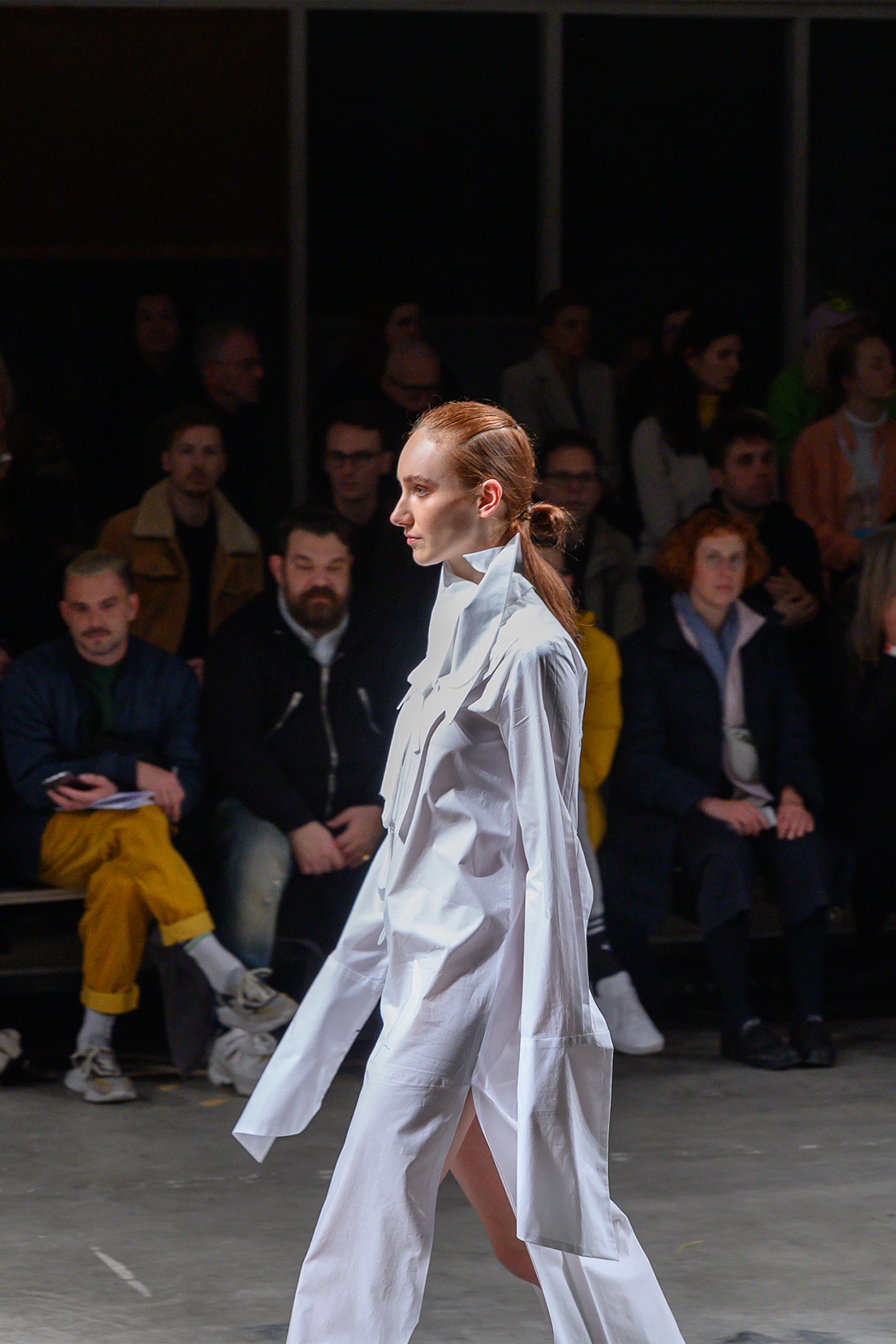 The shirtdress collection of HAESUNG BONG is a style of women’s dress that variates details from men’s dress shirts.