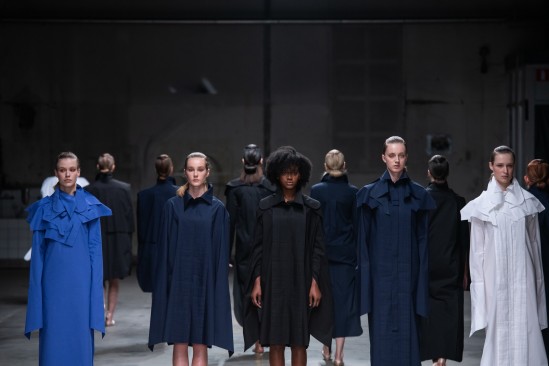 The shirtdress collection of HAESUNG BONG is a style of women’s dress that variates details from men’s dress shirts.