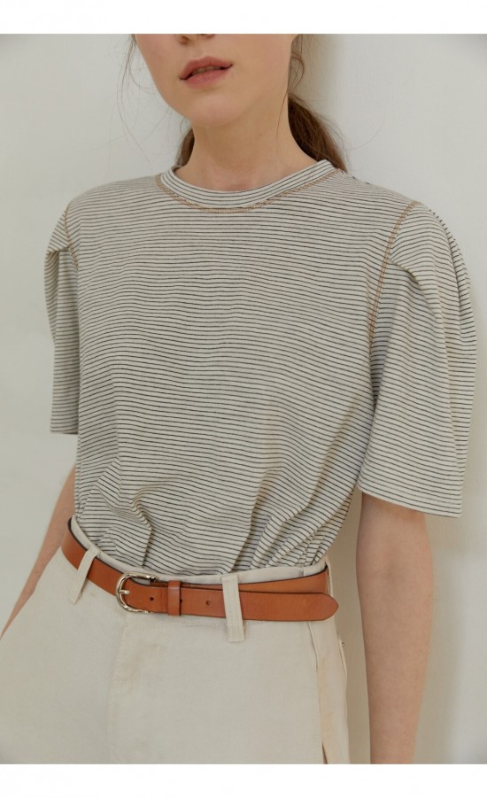 릴렉스드 실루엣의 크루넥 디자인으로 캐주얼한 형태지만 슬리브에 TUCK을 주어 페미닌한 무드를 더해주었습니다
