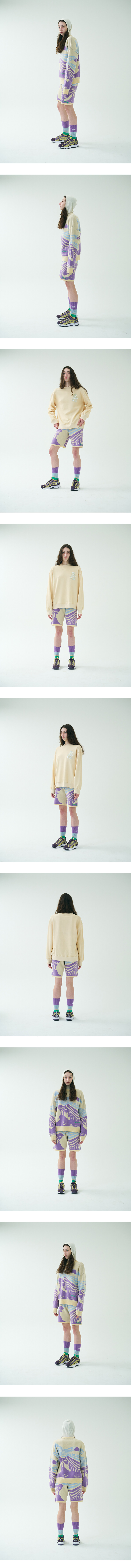 머쉬룸 포레스트의 싸이키한 단면을 형상화한 2도 자카드 조직의 니트 팬츠입니다.