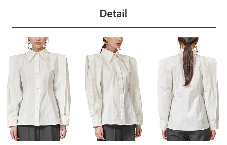 나그랑 형태로 절개 되어있는 소매에 각을 세워 세련되면서 유니크한 느낌을 주는 블라우스입니다.