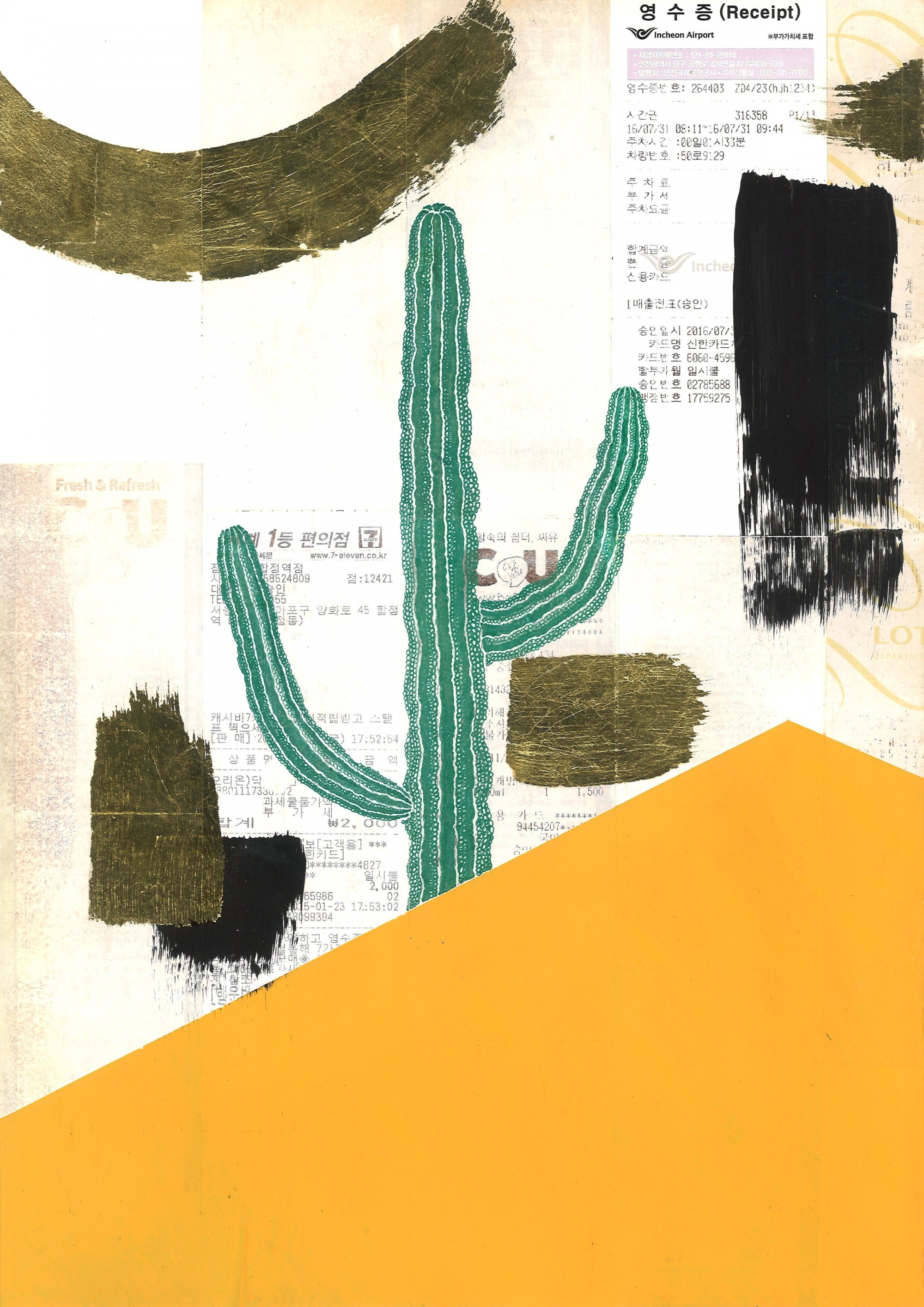25.7 x 36.4 cm Receipt, Pen, Gold leaf, Acrylic paint on paper 2022
